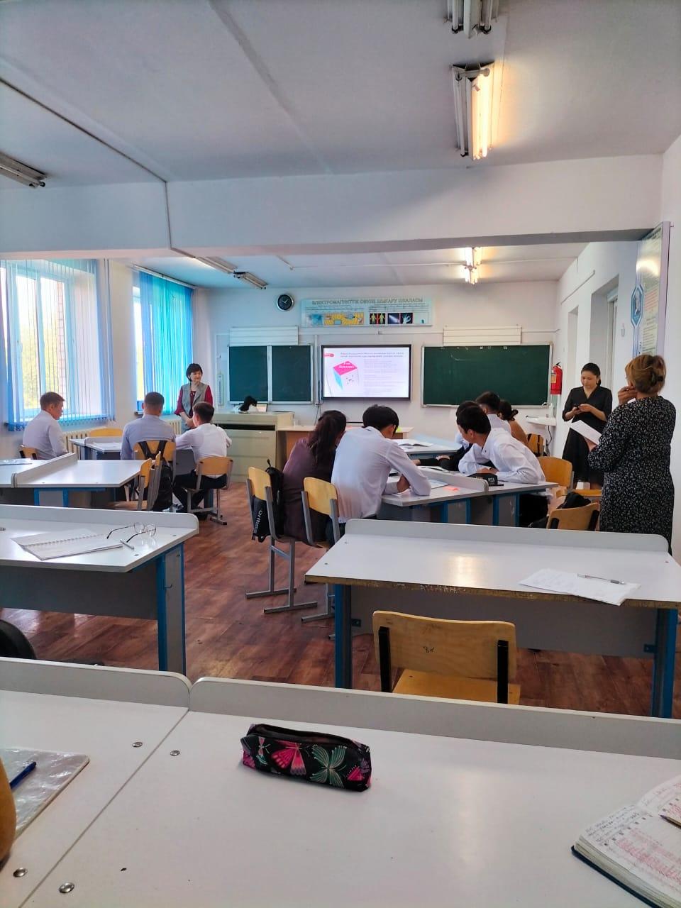 0 а сыныбында зерттеу сабағы өткізілуде:Кубизм әдісі. Ұстаздың шеберлігі оқушылардың зерттеушілік жумысын уйымдастыру аркылы Жәркен Бөдешұлынын  өмірі, шығармашылығы, мінезі ,жалпы казактың ұлы тарихы түлғаларының құндылығын зерттеу аркылы білім алу ортасын құра алуымен ерекшеленді.Зерттеу топ мүшелері  арасында кәсіби қолдау, іздену, сабакты жетілдіру барысында кәсіби даму көрінеді. Оны окушылардың сабақ барысындағы іс- әрекетінен байкалды. Табысты болыныздар, ұстаздық жолда!