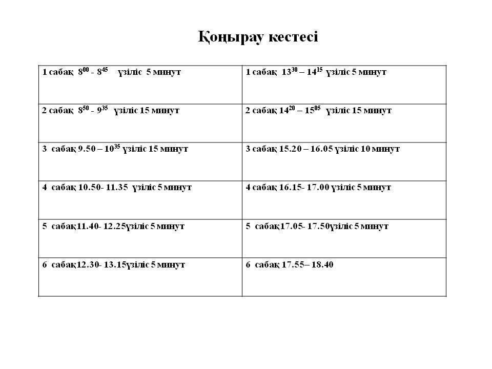 қоңырау кестесі » №16 орта мектеп-гимназия. Талдықорған