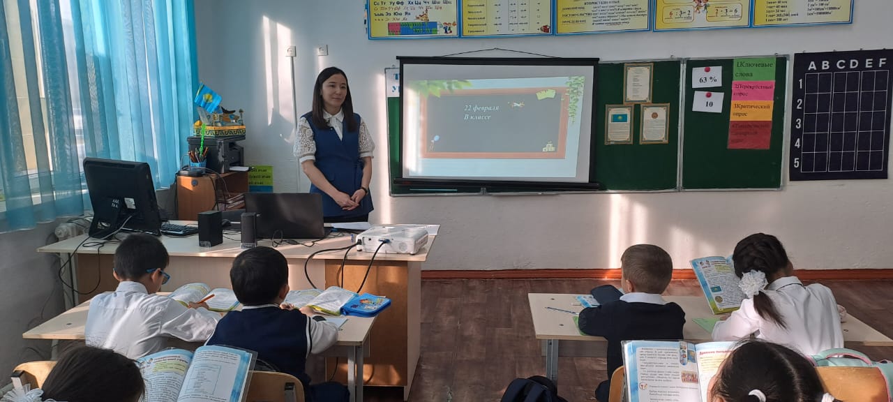 22.02.2023 г. в КГУ "СШГ #16" Терликбаева А.А. провела урок по технологии БиС "Устный урок - 1". Тема урока: " Государственные символы моей страны". На уроке первоклассники продемонстрировали умение читать, отвечать на вопросы, писать по памяти ключевые слова и тематический словарный запас слов.