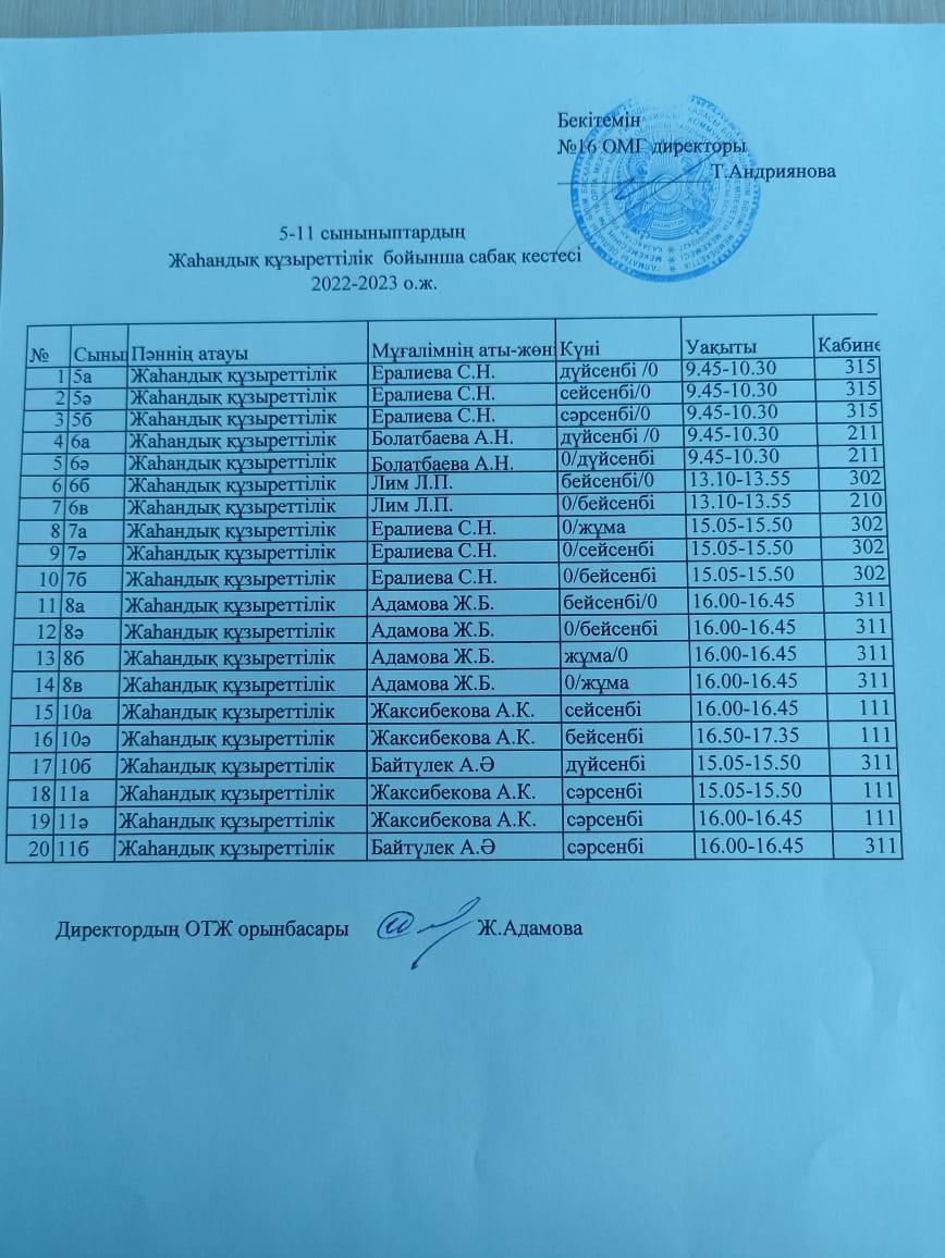 Жаһандық құзіреттілік » №16 орта мектеп-гимназия. Талдықорған
